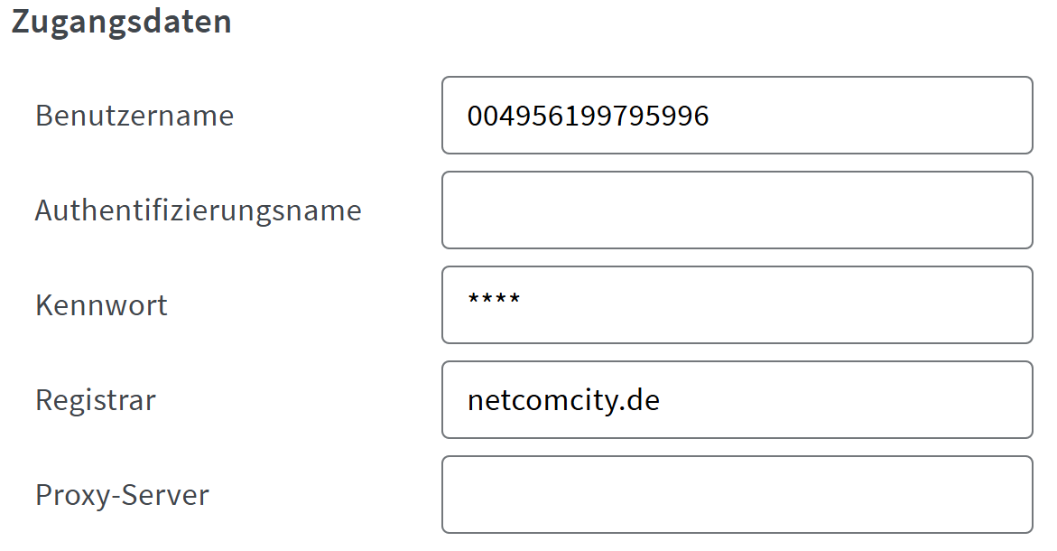 Interne Rufnummer: Rufnummer ohne Vorwahl Benutzername: 0049 – Vorwahl ohne 0 – Rufnummer